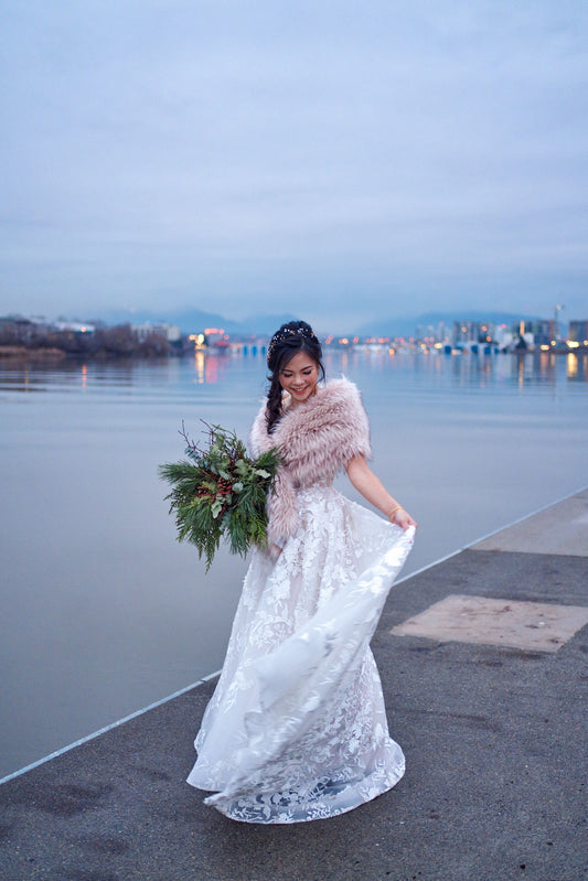 Light blush faux fur bridal wrap, wedding faux fur shawl, faux fur stole, bridal cape, faux fur shrug B005-light-blush-new