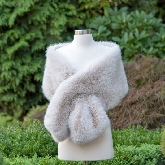 Light blush gray faux fur wrap bridal shawl wedding faux fur shawl, faux fur stole, bridal cape, faux fur shrug