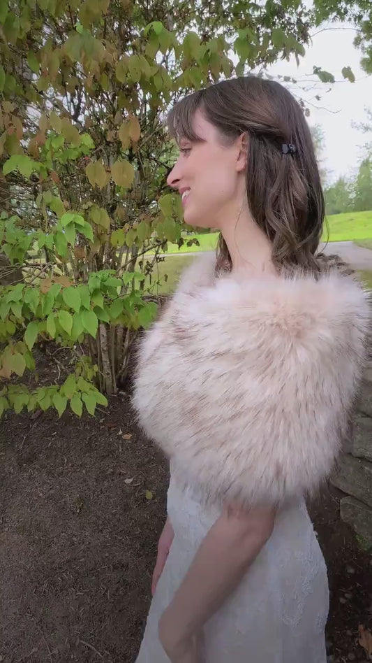 Beige light brown faux fur wrap faux fur stole faux fur shawl bridal wrap bridal cape faux fur shrug B005-beige