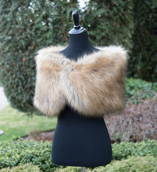 Brown faux fur wrap, faux fur stole high imitation, faux fur shawl, bridal wrap faux fur shrug B005-fox