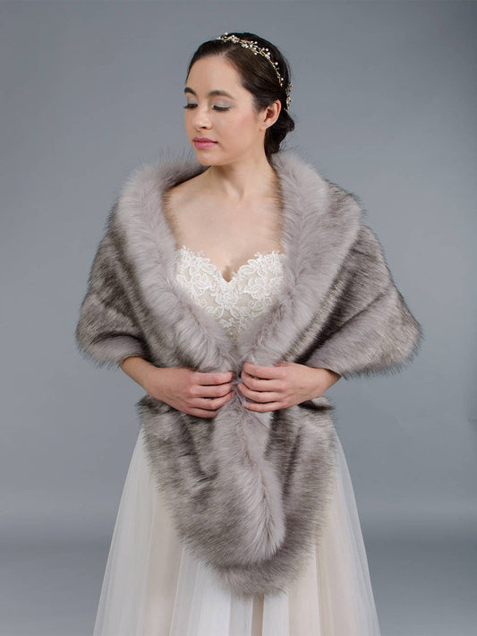 Light gray faux fur bridal wrap with darker tips, wedding fur shawl, silver fur wrap, bridal faux fur stole, fur cape B005-light-gray