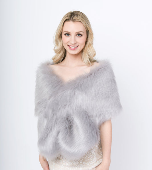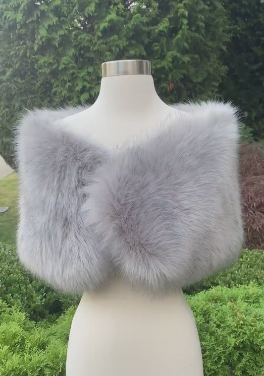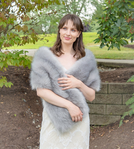 Light gray faux fur bridal wrap, wedding fur shawl, silver fur wrap, bridal faux fur stole, fur cape B005-light-gray