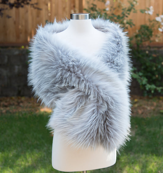 Gray faux fur wrap faux fur stole faux fur shawl bridal wrap faux fur shrug B002-gray