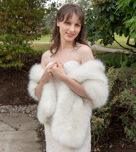 Wide light ivory faux fur bridal wrap wedding faux fur shawl bridal faux fur stole bridal wrap wedding cape B010-light-ivory