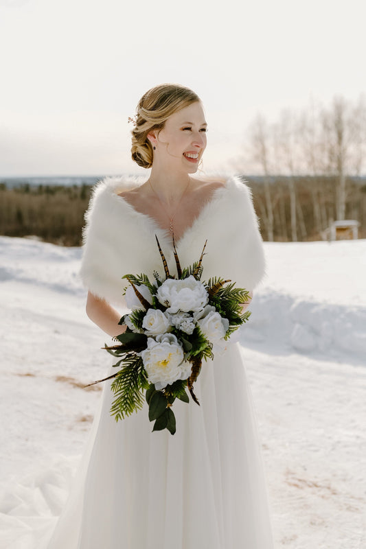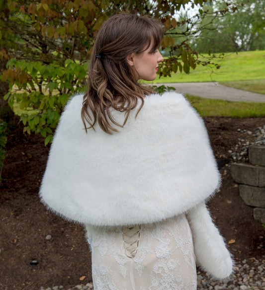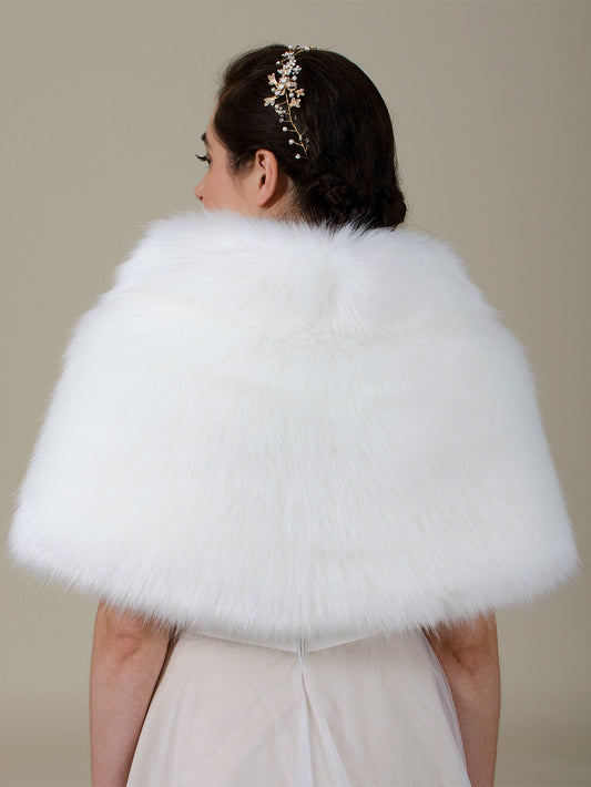 Ivory faux fur bridal wrap, wedding faux fur shawl, faux fur bridal stole, faux fur cape B015-Ivory
