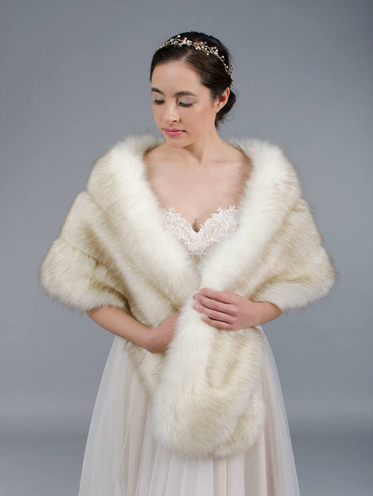 Ivory faux fur wrap faux fur stole B006-Ivory