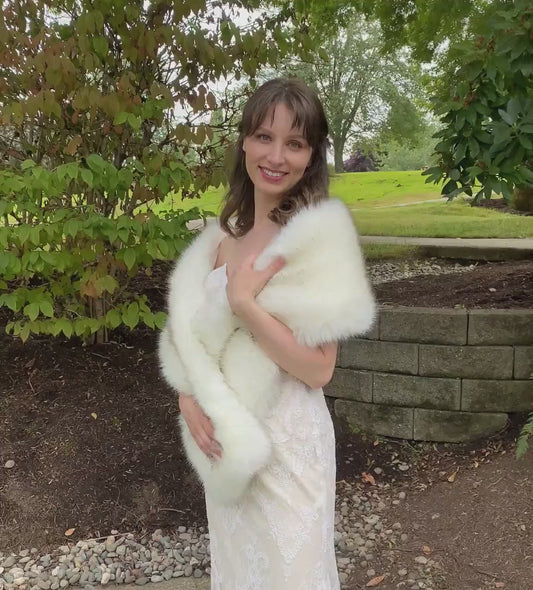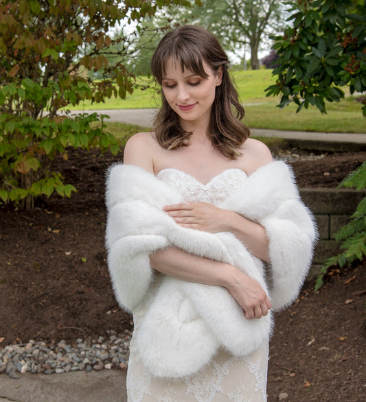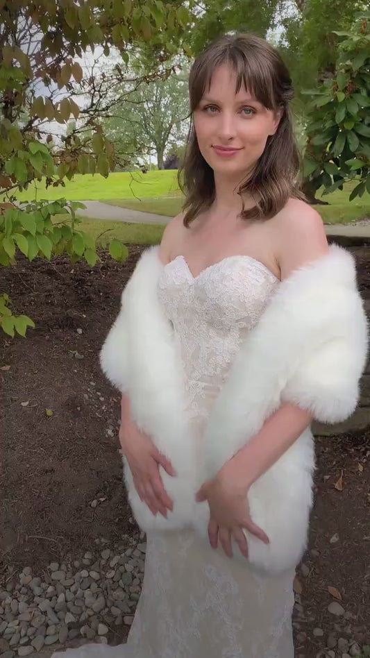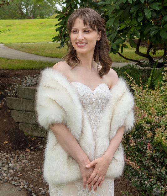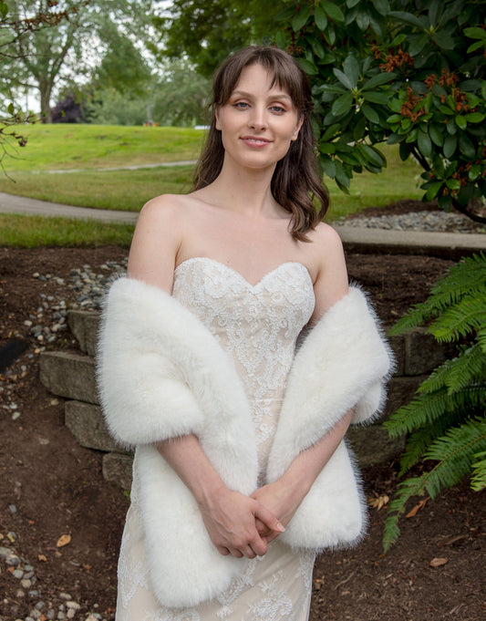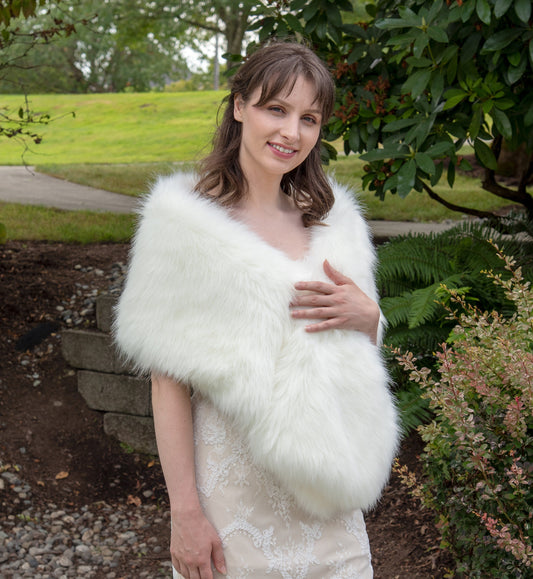Wide ivory faux fur bridal wrap wedding faux fur shawl bridal faux fur stole bridal wrap wedding cape B010-ivory