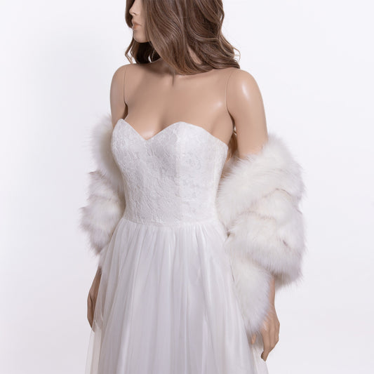 Light ivory faux fur wrap faux fur stole faux fur shawl bridal wrap faux fur shrug B008-ivory