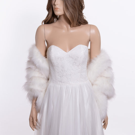 20" wide ivory faux fur wrap with darker tips, wedding faux fur shawl, bridal faux fur stole, bridal wrap, B010-ivory-black-tips