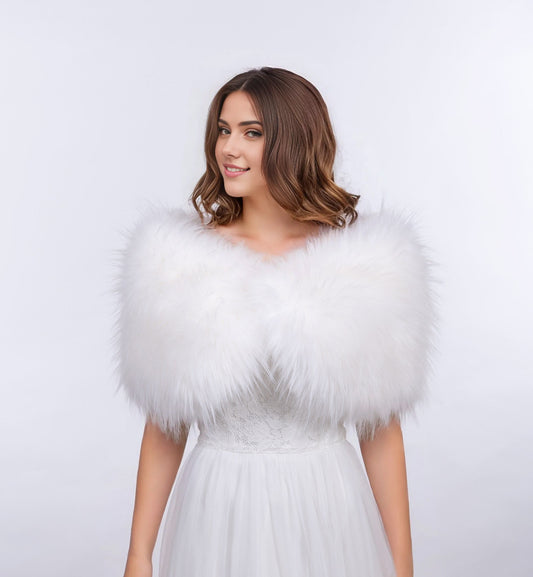 White faux fur bridal wrap, wedding faux fur shawl, faux fur bridal stole, faux fur cape B012-white
